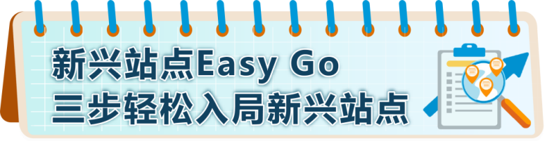 为了帮助卖家规避可能出现的风险,亚马逊推出 “新兴站点Easy Go”策略,通过提供一套完整的拓展新站点解决方案,从注册、物流及仓储再到快速成长,为卖家提供端到端全链路的产品及解决方案支持。