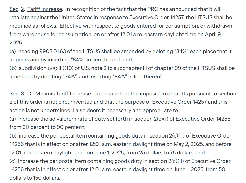 回溯此前,4月2日,美国政府宣布对中国输美商品加征34%的“对等关税”,4月4日,中国迅速且有力地作出对等回击,宣布对原产于美国的进口商品加征34%关税,并计划于4月10日生效。
