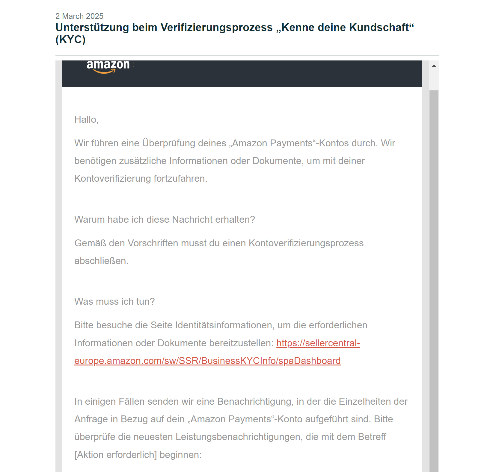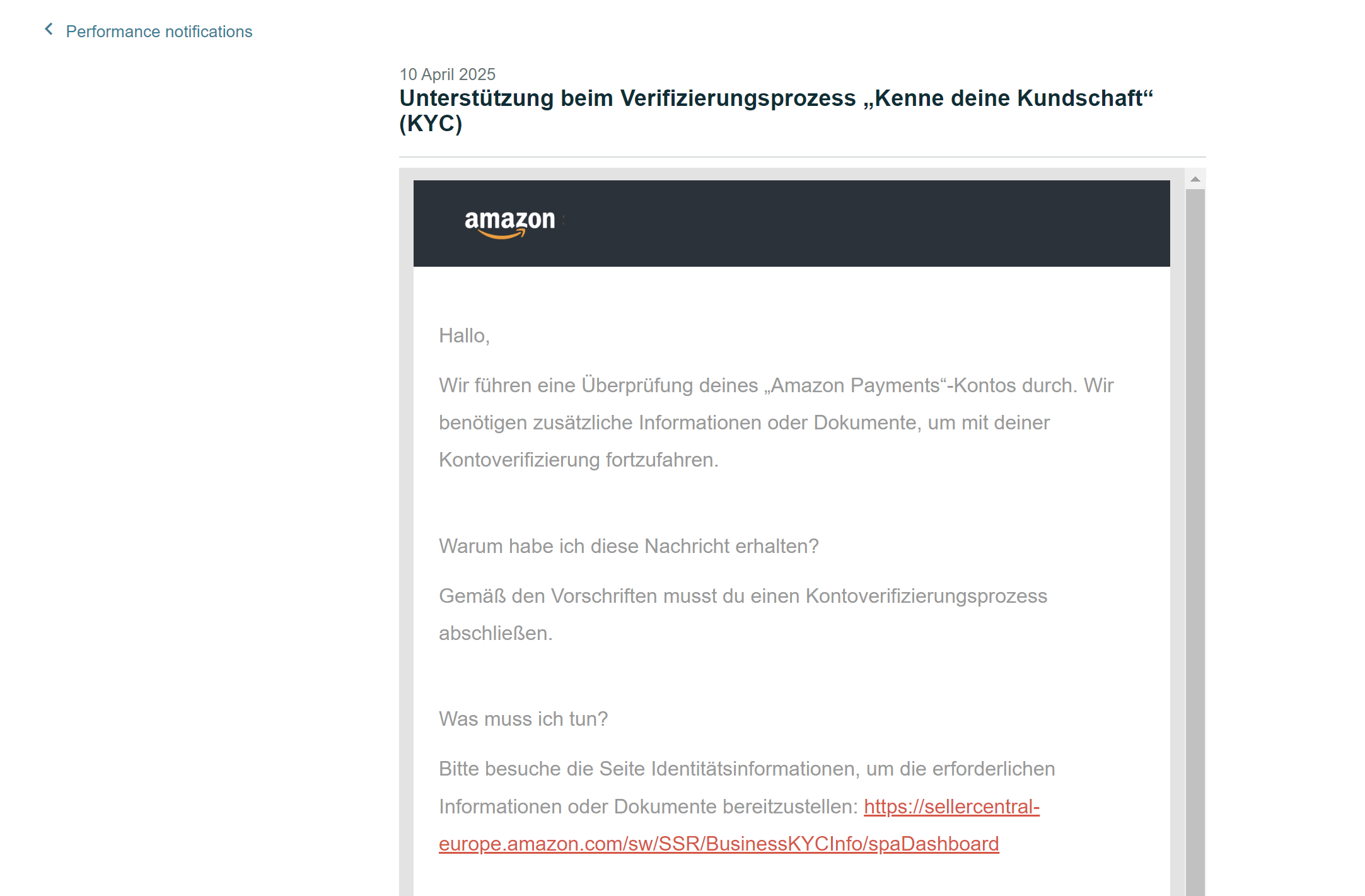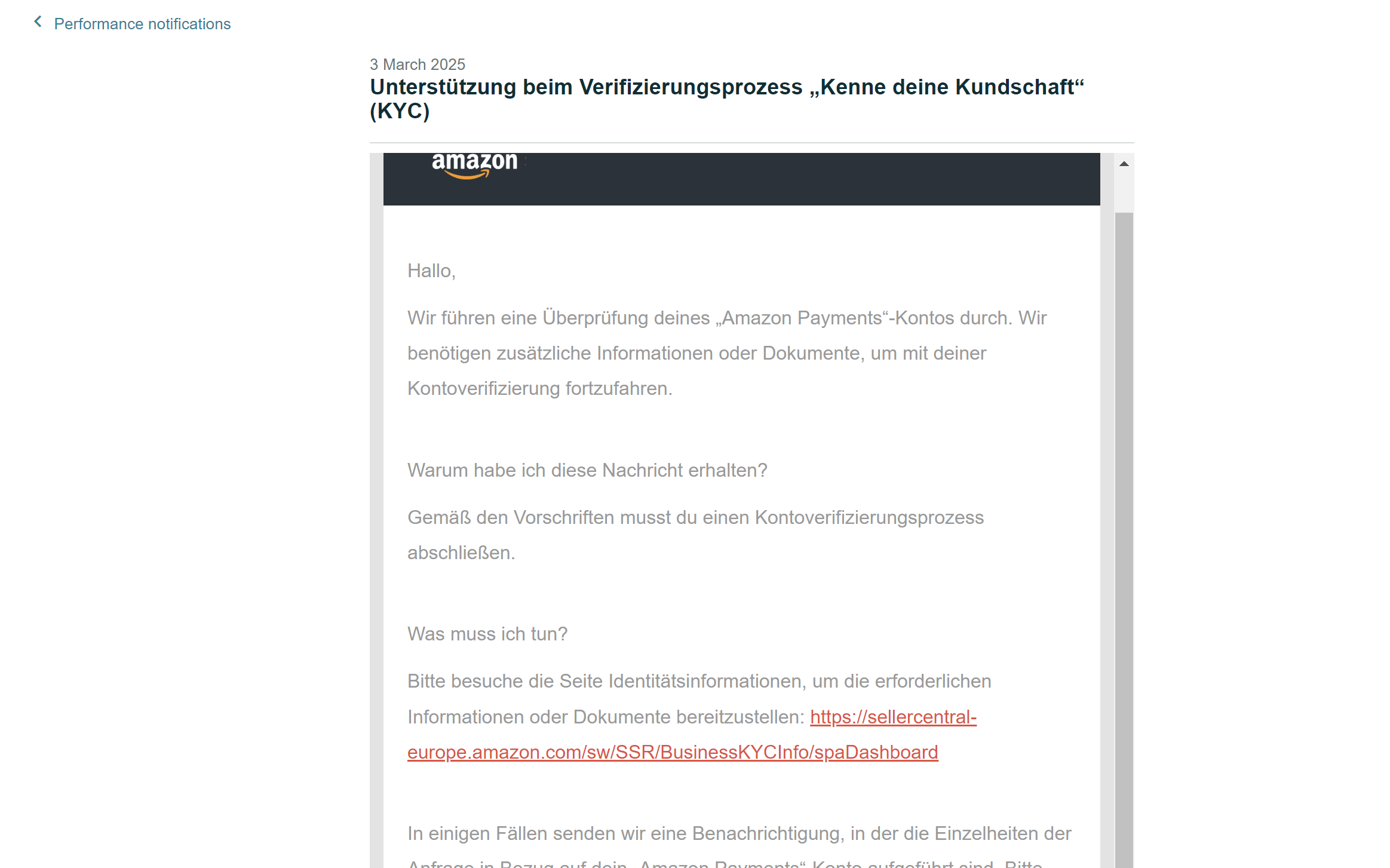 在3月份,这个店铺按常规流程触发了第一封KYC认证邮件,就是一个常规型的邮件,需要你在身份信息认证那里提交公司章程。这时它没有触发法人的各种审核问题,只是需要提交公司的注册章程。因为这是一个罗马尼亚本本号,所以我们需要安排公证和翻译,在我们安排公证翻译之后,这个资料是接受了,但是我们又触发了第二轮审核。