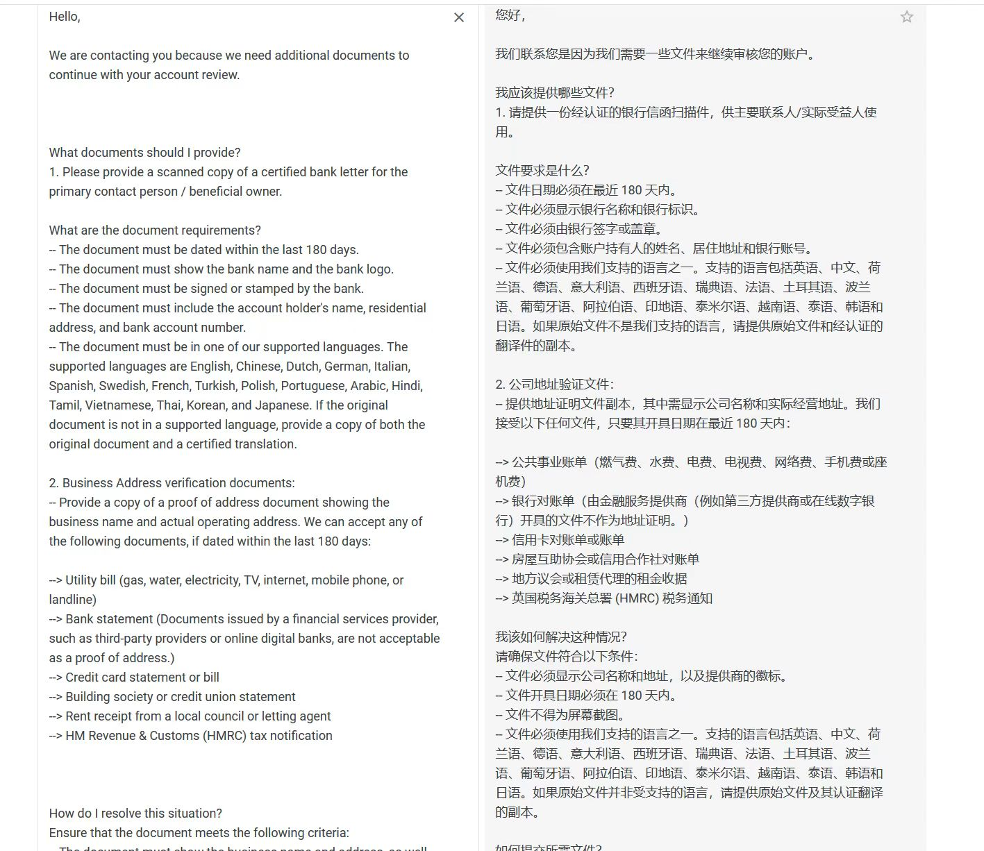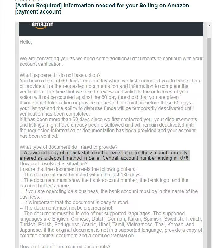 我们上传公司章程之后,亚马逊又说需要更多的文件来审核账户信息。第二轮需要法人的地址证明,我们就提供了法人的银行账单。