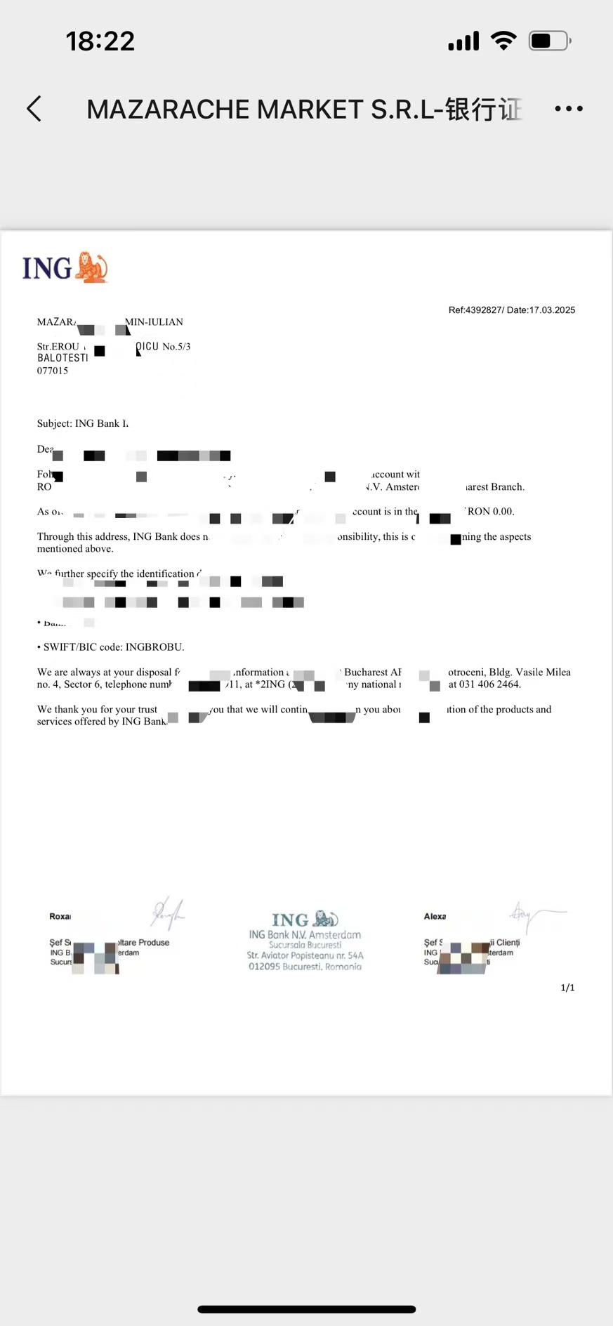我们选择的是ING银行,这是欧洲非常大的一个实体银行,我们把开户证明信开出来,翻译提交之后,OK就没有问题了。但平台又继续要了别的东西,是什么呢?