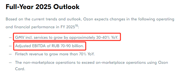 而根据目前的趋势,Ozon预计,到2025年底,营业额将同比增长30%至40%。公司预测调整后的EBITDA将达到700亿至900亿卢布,这意味着同比增长75%至125%。