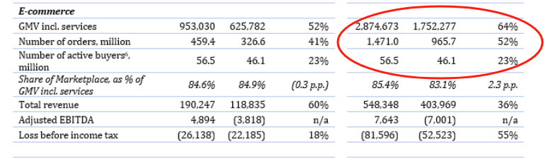 平台为卖家提供5万卢布广告预授信额度,以这样销售额扣费模式来降低资金压力。在金融科技板块(消费信贷、嵌入式支付)提升用户复购,例如,生鲜配送业务订单量就同比增长了60%。