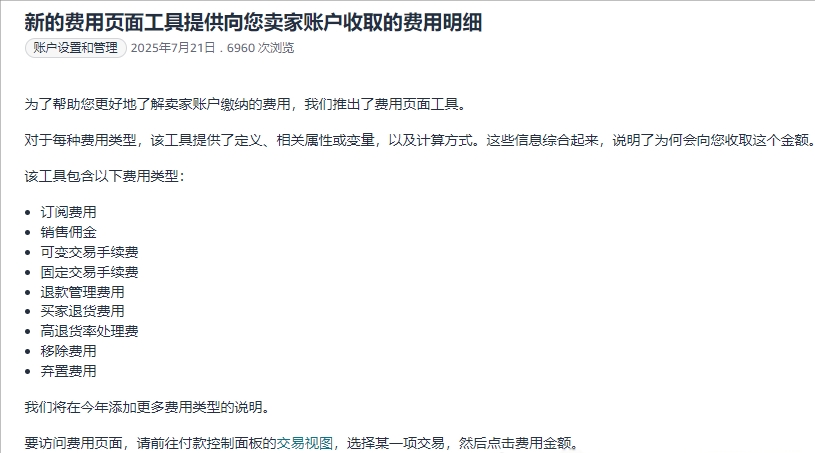 从亚马逊卖家公告栏的内容来看,“费用说明器” 会给每一种费用配上定义、适用变量以及计算方式。
