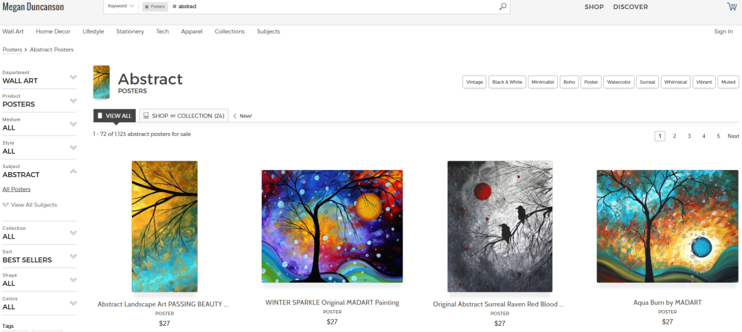 艺术家Megan Aroon Duncanson以充满活力的涂鸦风格作品著称,她擅长捕捉富有想象力且充满动感的场景,创作题材涵盖旋转的彩色树影、奇幻海洋生物等装饰设计,每件作品都展现出独特的美感。