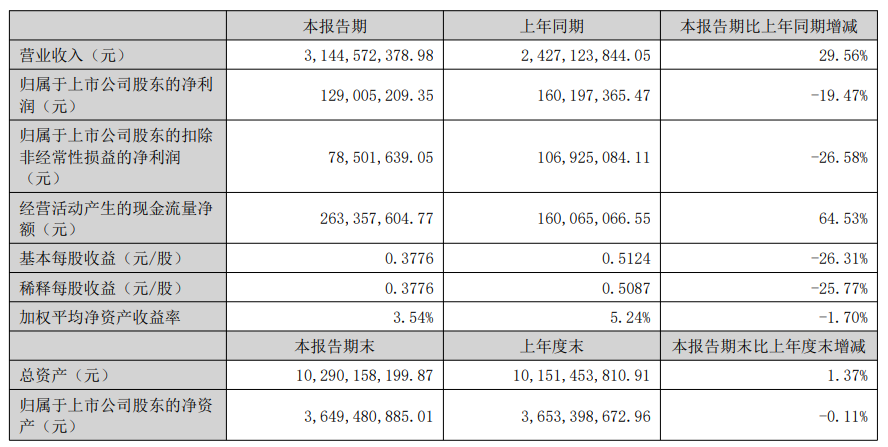 8月26日,乐歌股份(300729.SZ)披露半年报,上半年实现营业收入31.45亿元,同比增长29.56%;归属于上市公司股东的净利润 1.29 亿元,较上年同期减少 19.47%。