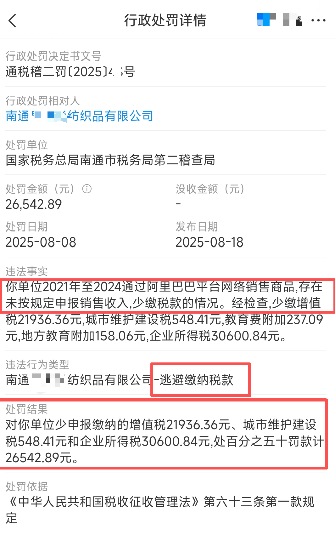 这有一个最新的跨境1688供应商被查处的案例,除了补缴增值税和企业所得税以外,被罚的金额不多,就2.6万元。