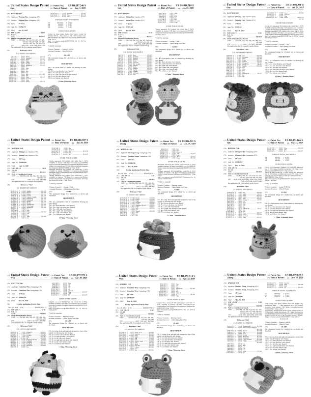 查询发现,今年还有以下针织玩具已注册专利,建议大家一并规避,以免踩雷: