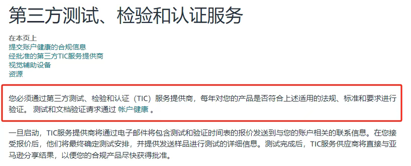 亚马逊又有新规!自9月起,亚马逊正式引入TIC机构直接验证制度,符合要求的产品必须通过“直接验证”完成合规。目前已有不少卖家收到通知,需在指定期限内(21天内)完成所有受影响ASIN的合规操作,否则将面临下架停售风险。