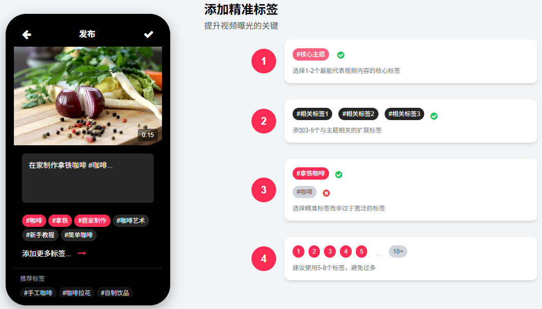 同时,要注意标签数量不宜过多,1-2个宽泛标签、2-3个精准标签和1-2个热门标签的组合较为合适,避免堆砌标签影响用户体验。