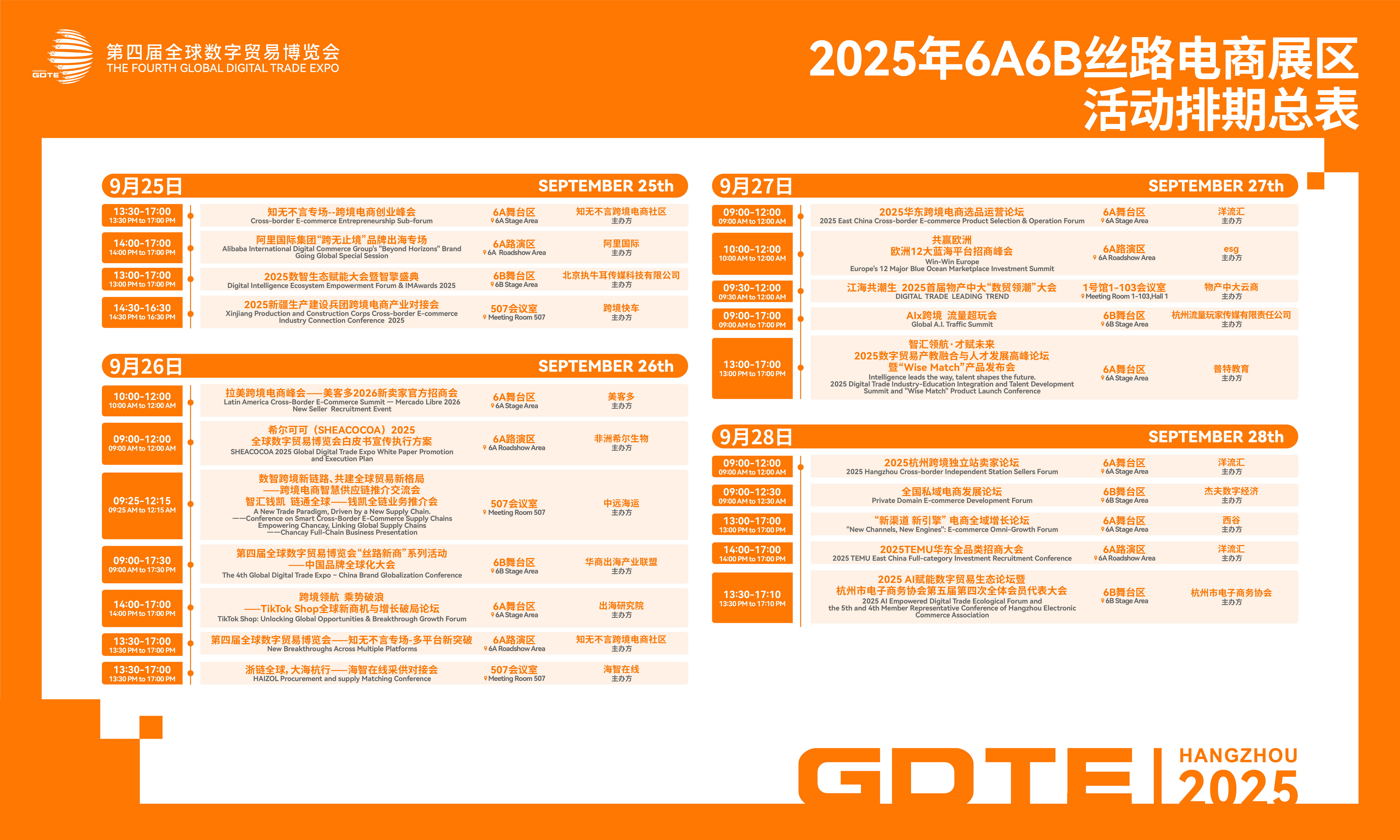 大会还将设置一对一咨询环节,卖家可直接与50+平台的招商经理面对面沟通,获取第一手入驻信息和解惑答疑。抓住2025年全球电商平台对中国卖家开放的历史机遇,从单平台运营转向多平台布局,共同开拓跨境新蓝海,请关注9月25—9月29日,第四届全球数字贸易博览会“丝路新商”系列活动!