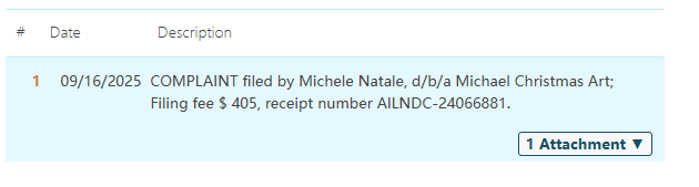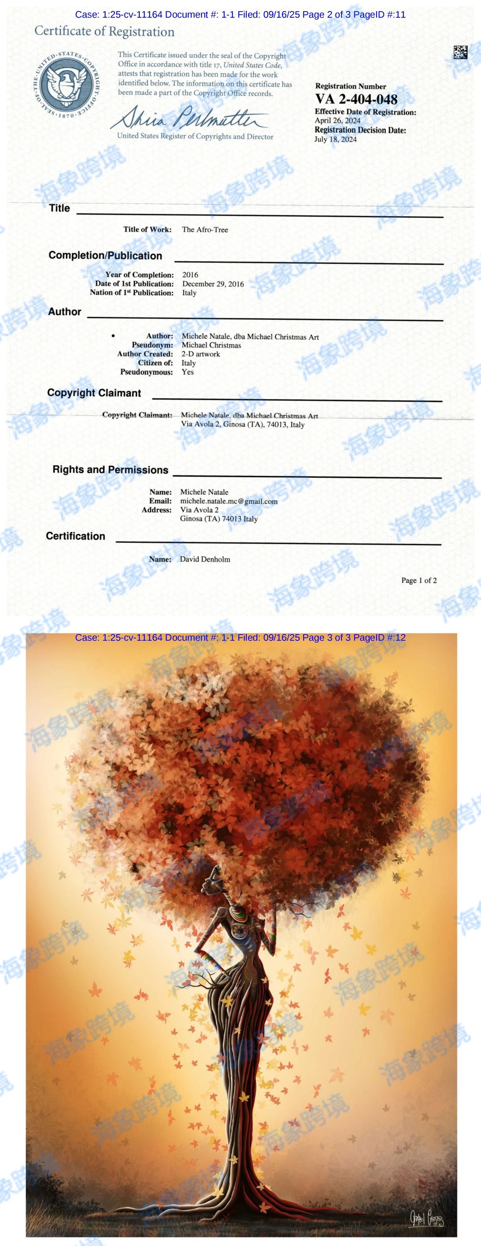 原告MicheleNatale,以MichaelChristmasArt的名义,拥有版权注册保护创作内容。他专
