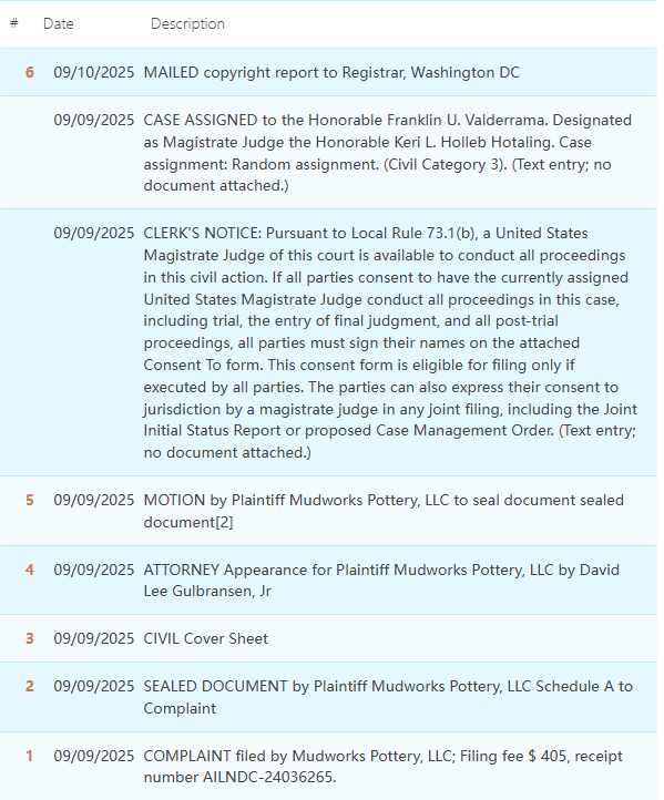 原告MudworksPottery,LLC总部位于美国加利福尼亚州,是一家专业从事设计、模具制作、