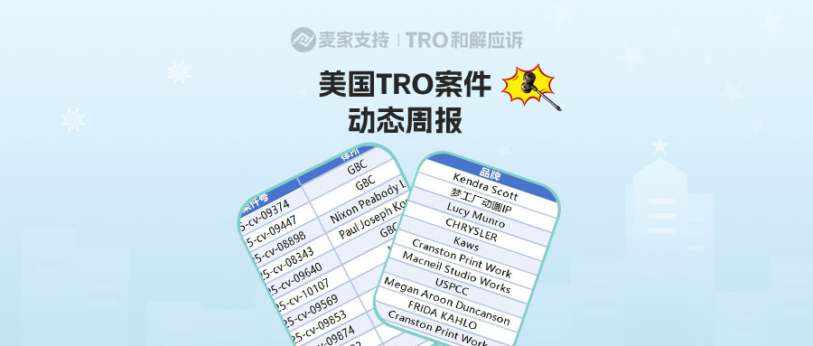 需要名单的卖家可结合麦家支持整理的美国TRO周报查看对应的案件最新进展,以及名单公布情况在评论区留言“名单”获取!想知道更多案件详情的卖家也可留言告知我们。