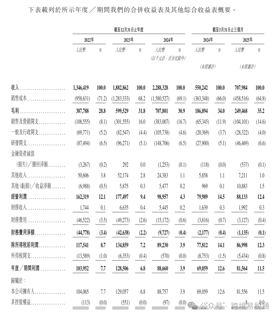 招股书显示,2022年至2024年,创想三维营收从13.46亿元增至22.88亿元;净利润增速显著放缓,2022年净利润为1.04亿元,2023年增至1.29亿元,但2024年回落至8866万元。