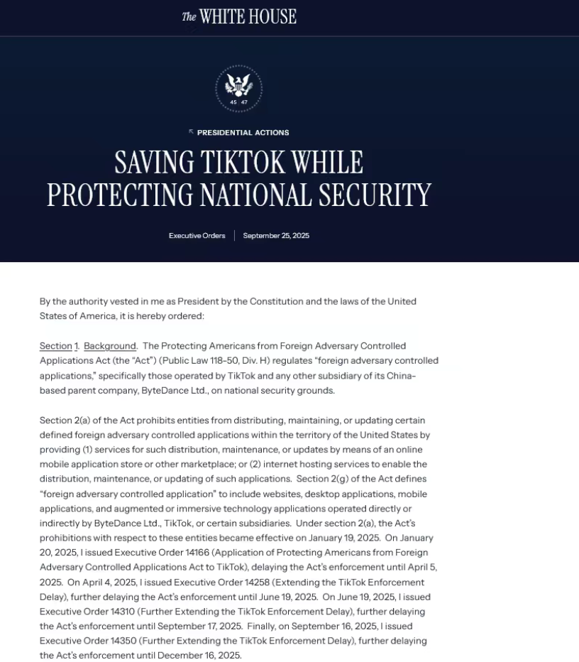 这一行政令的出台,为此前陷入争议的TikTok美国业务走向提供了官方指引,而方案的核心架构与关键细节也随之明确。
