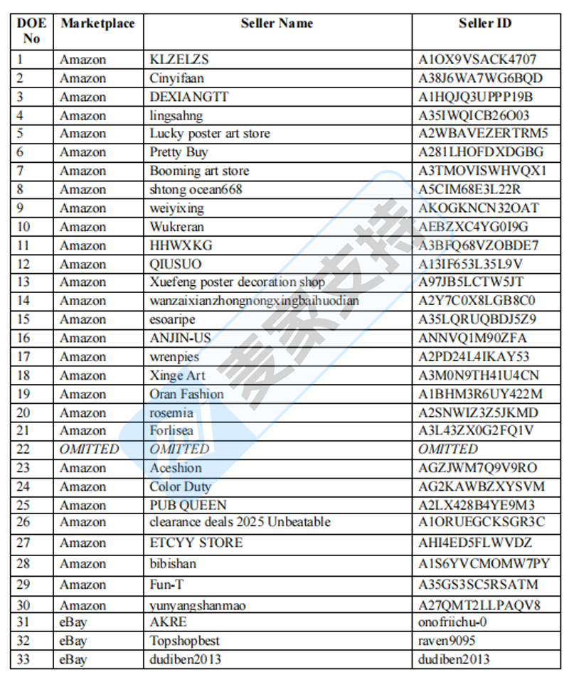 本案是Sriplaw律所3月下旬代理Junaid Mortime发起的匿名版权维权案件,该案件历时数月终于获批TRO临时限制令,成功冻结33个涉案店铺,目前已向法院递交了初步禁令申请,暂未获批!需要名单的卖家可在评论区留言“名单”联系我们获取!