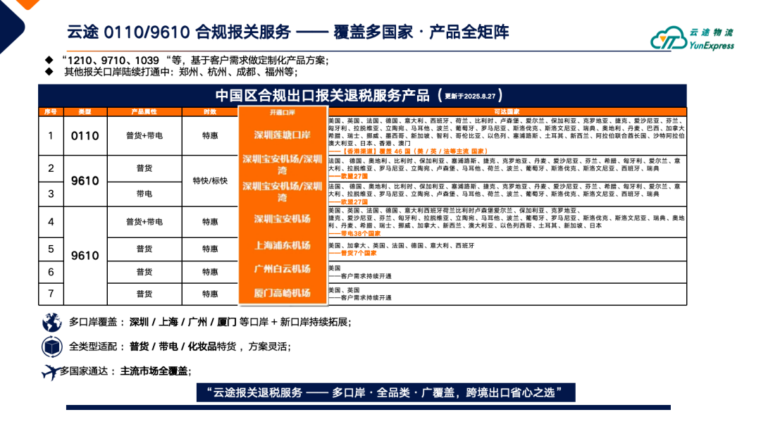 A:云途作为物流承运商,不直接提供退税服务,但可提供合规的报关申报服务,为退税奠定基础。
