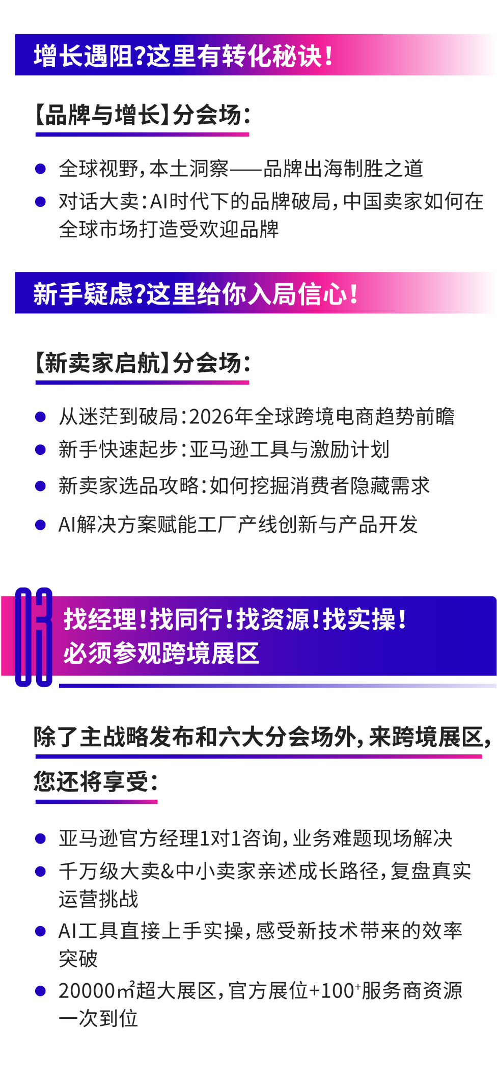 适合有一定经验的卖家或希望提升品牌力与全球化战略的卖家,聚焦实战案例、深度运营思路与增长突破方案。