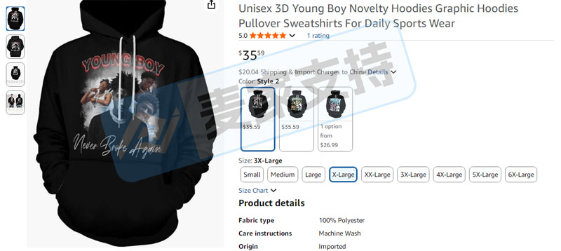 本案是Stites & Harbison PLLC代理End to End System, LLC在田纳西州发起的商标维权案件,针对艺人YoungBoy Never Broke Again在美国的注册商标,未经授权使用行为发起的维权。该艺人注册商标包含:Never Broke Again,商标号为:5964482,注册在9大类,涵盖录音及相关商品,另有YoungBoy Never Broke Again、Never Broke Again以及MASA Tour商标处于待审核状态,商标号分别为:99427857、99427862以及99427874,均注册在25大类,涵盖服饰品类,以及第41大类涵盖娱乐服务及相关业务。以上商标未经授权使用均会面临TRO冻结风险,麦家支持建议跨境卖家在选品过程中注意避雷!