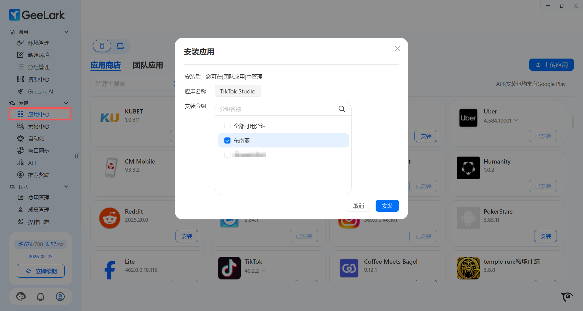 现在,通过应用商店为云手机环境安装应用时,你可以直接勾选特定的团队分组,系统会自动为所选分组的云手机环境安装应用,无需逐个手动操作,节省了大量时间和精力。