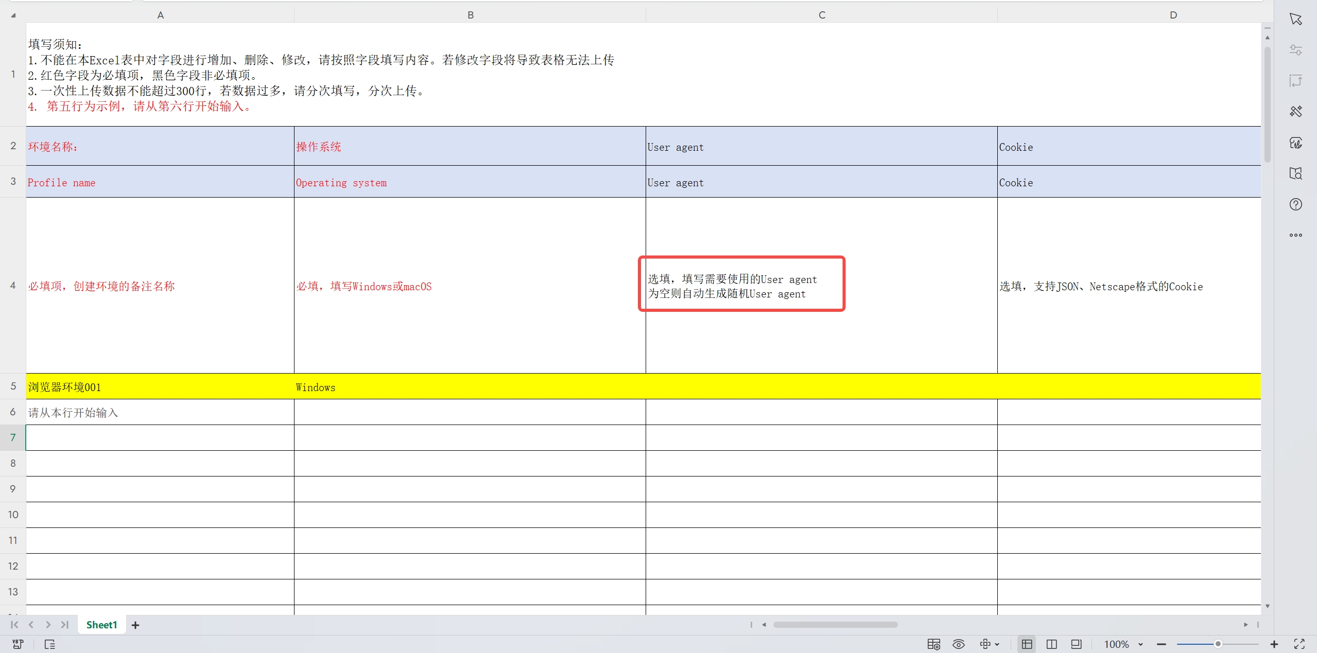 在新建浏览器环境时,选择 “同组快速创建”,可选择 “随机 User Agent”,系统将自动为每个创建的浏览器分配随机的 UA 和指纹信息。同时,你也可以通过“表格批量创建”上传表格模板完成批量创建浏览器,在表格填写 User Agent 一栏为“空”时,则自动生成随机的 User Agent。