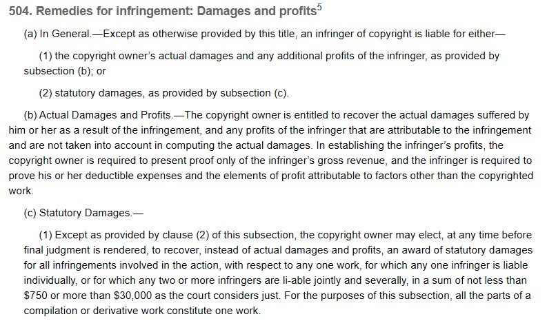 法定赔偿是原告最爱用的方式——无需证明实际损失,法院可针对每个侵权作品判750至30000美元的法定赔偿,故意侵权甚至能到15万美元。
