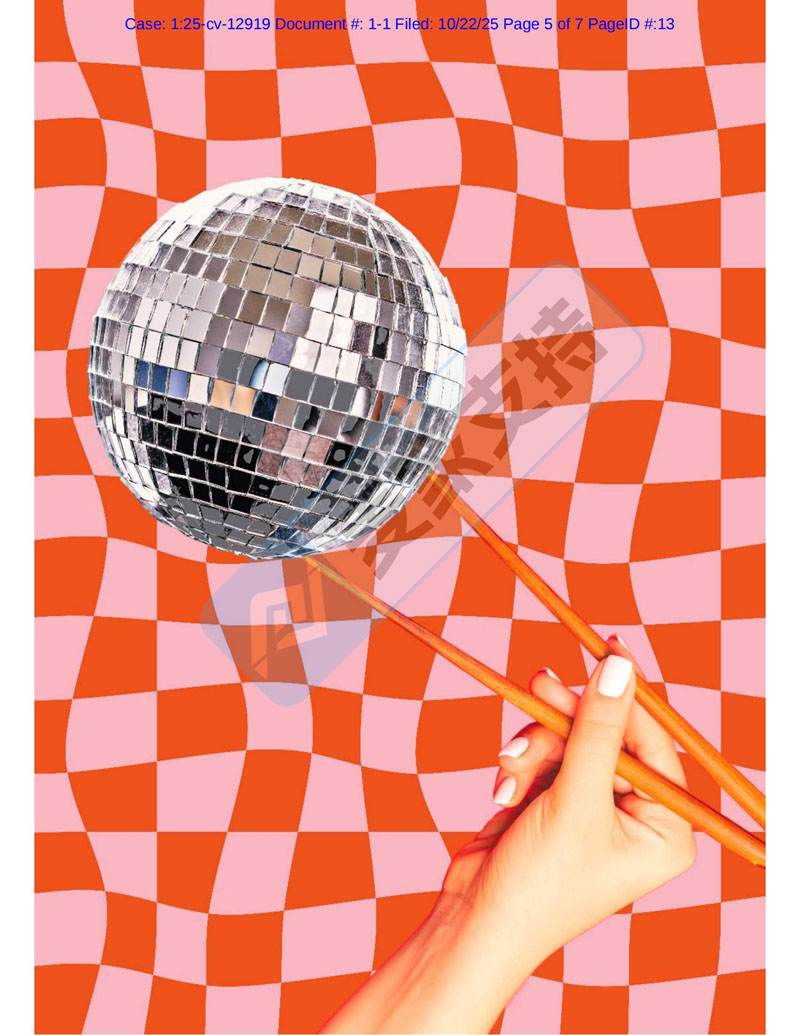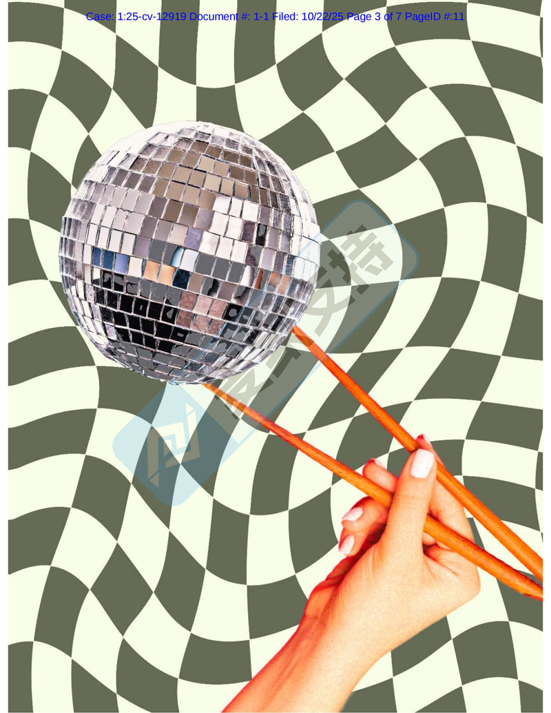 本案是keith律所代理Caroline Valsaint发起的版权维权案件,均与极具视觉冲击力的迪斯科筷子作品有关,该系列版权于2025年5月7日获得美国版权认证,版权号为:VA 2-453-781、VA 2-455-718和VA 2-455-715。目前该案件处于前期立案阶段,暂未获批TRO临时限制令,有上架过此类作品的卖家需尽快排查下架,并做好下一步应对措施!