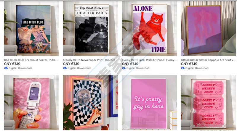 Caroline Valsaint在 Etsy 平台经营着一家名为SaltyBicheStudio的店铺,售卖自己充满活力的作品。这些作品主题鲜明,以女性权利、酷儿之爱以及大胆的自我表达为主题,传递其温暖且强大的正能量,这些作品在网络上引发了广泛共鸣,收获了众多粉丝与关注者。