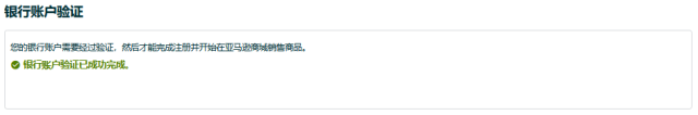 一般等待24小时之后,刷新界面您会看到银行账户验证的结果,如果您看到如下提示,意味着银行账户验证通过。