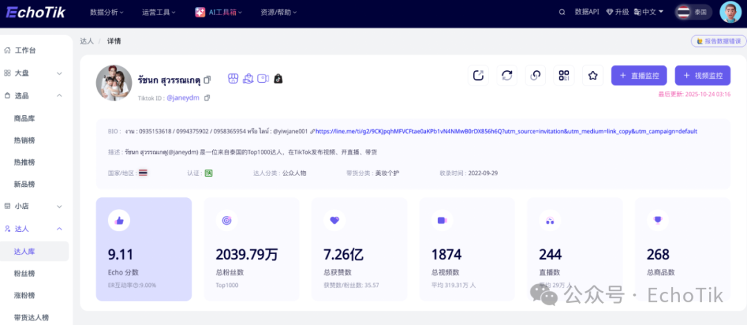 10月的一场直播,让泰国TikTok继P姐之后,又再造了一个“泰国版李佳琦”!