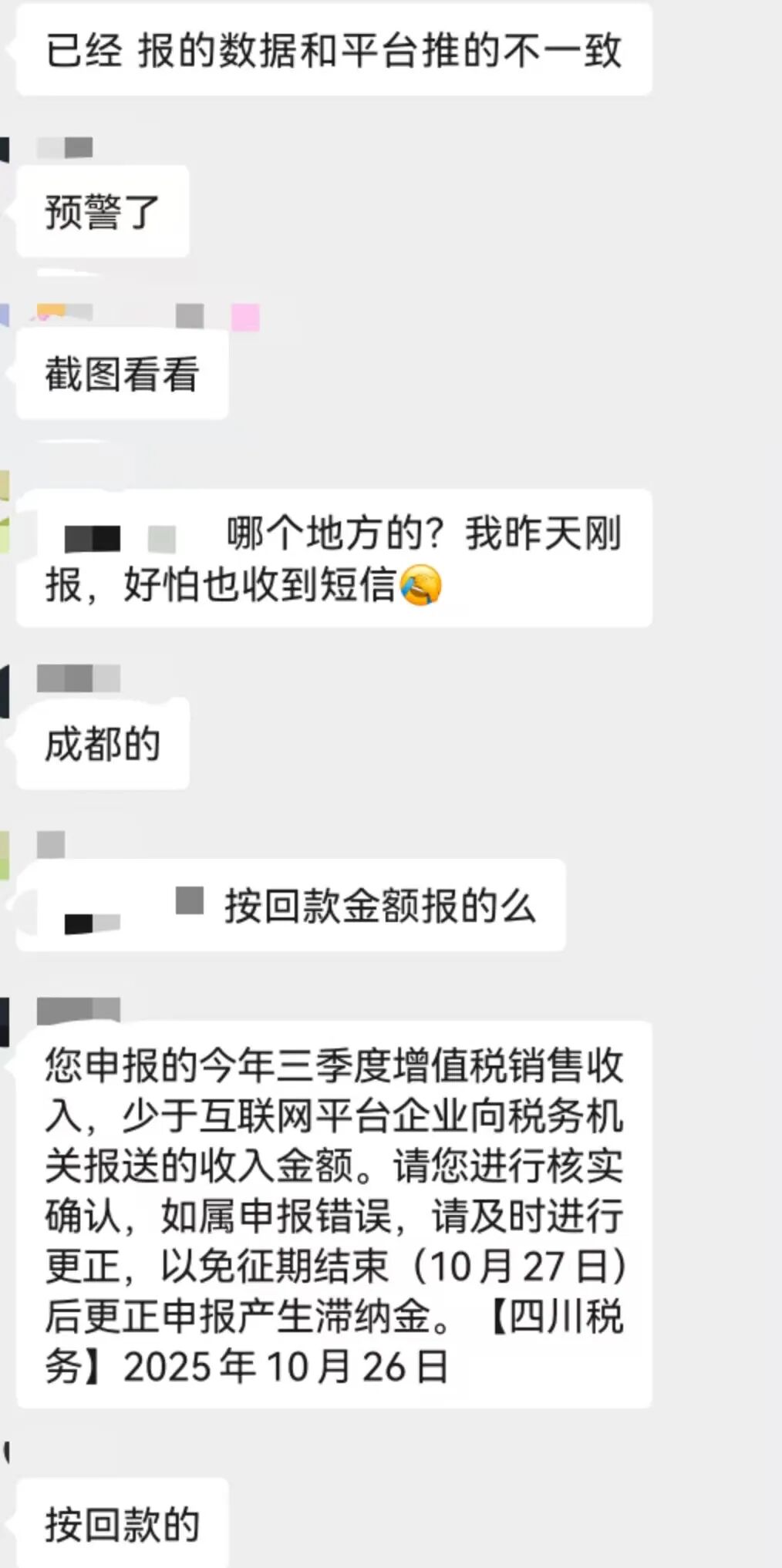 虽然,10月27日税务部门明确表示,短信提醒对象仅限于自行申报收入与平台报送收入差额较大的少数经营者,对占平台主体的大多数中小微企业基本没有影响。