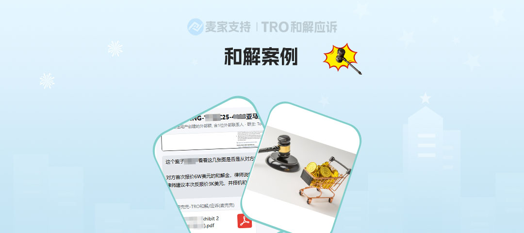 鉴于客户0销售且冻结金额不少的情况,麦家支持为客户推荐了资深律师跟进,并第一时间向原告方索取侵权证据,并针对涉案产品确无销售记录,以冻结资金与侵权行为无因果关系为核心论点,结合卖家合规经营记录,向原告诉求降低和解金额。最终经过多轮有效谈判,以1500美元达成和解,和解金额低至冻结的12.7!为客户直接挽回经济损失超1万美元,资金周转压力得以缓解。