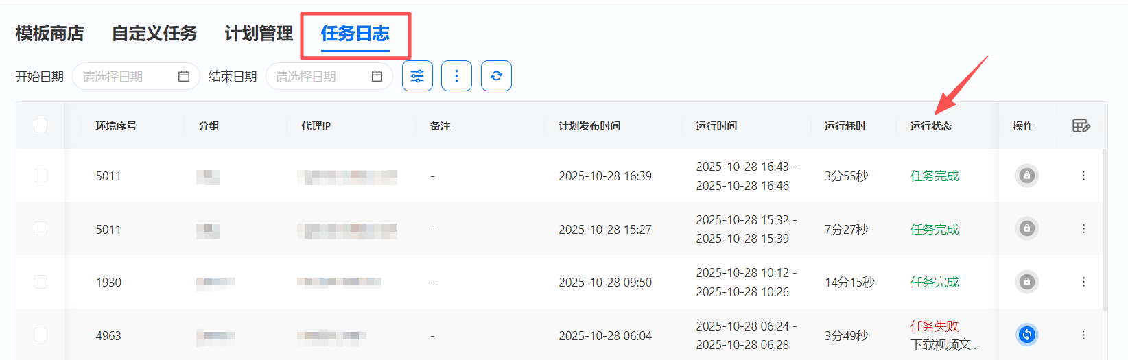 A:当自动化任务执行结束时,才会显示运行时间、运行耗时等。你可以通过“自动化”-“任务日志”进行查看。