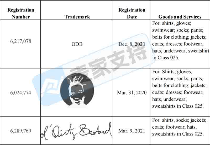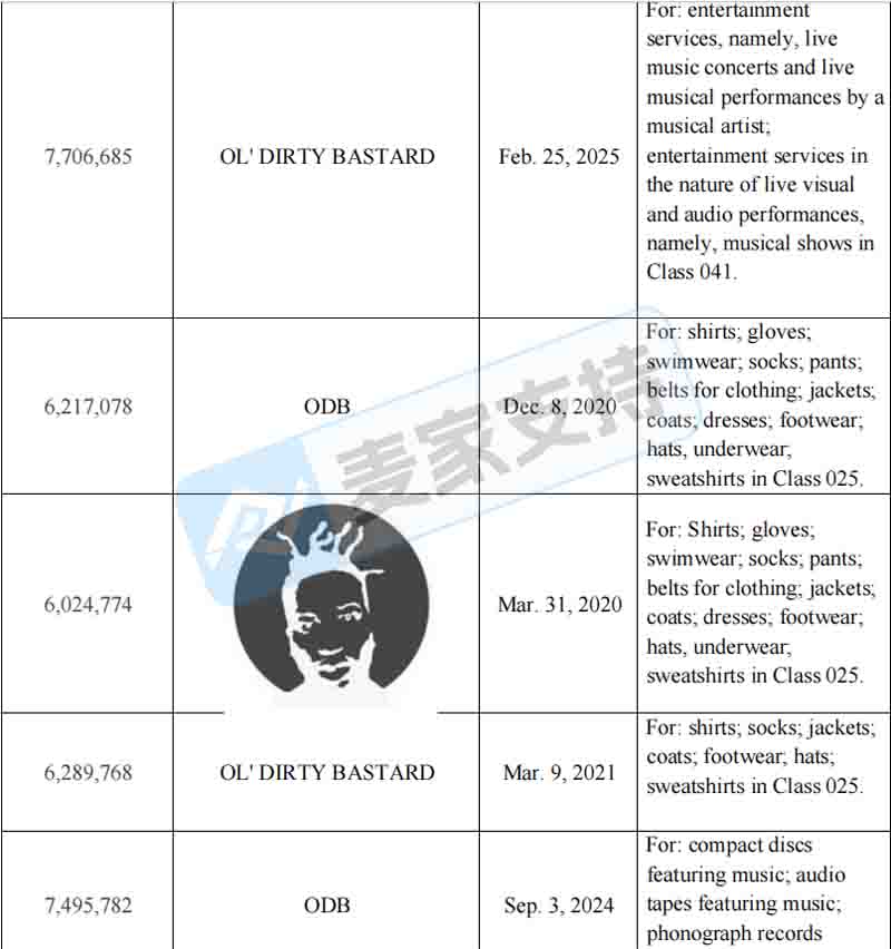本案是TME律所代理Estate of Russell Jones,针对美国说唱歌手Ol’ Dirty Bastard在佛罗里达南区发起的商标维权案件,涵盖第9、25和41大类的音乐音频、服饰以及娱乐类目等领域,未经授权使用则会面临TRO冻结风险,目前该案件处于前期立案阶段,TRO暂未获批,跨境卖家注意排查下架高风险产品!
