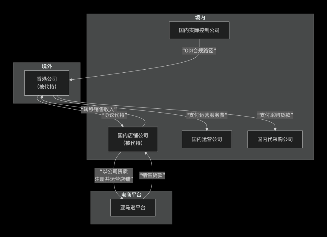 目前,市场基本有两种代持模式。 第一种模式是通过香港公司代持,国内公司通过ODI投资备案,控股香港公司,销售收入归集到香港公司,香港公司从国内采购服务和产品。