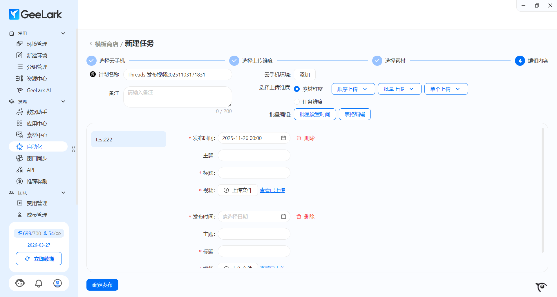 GeeLark 自动化发布 Threads 视频