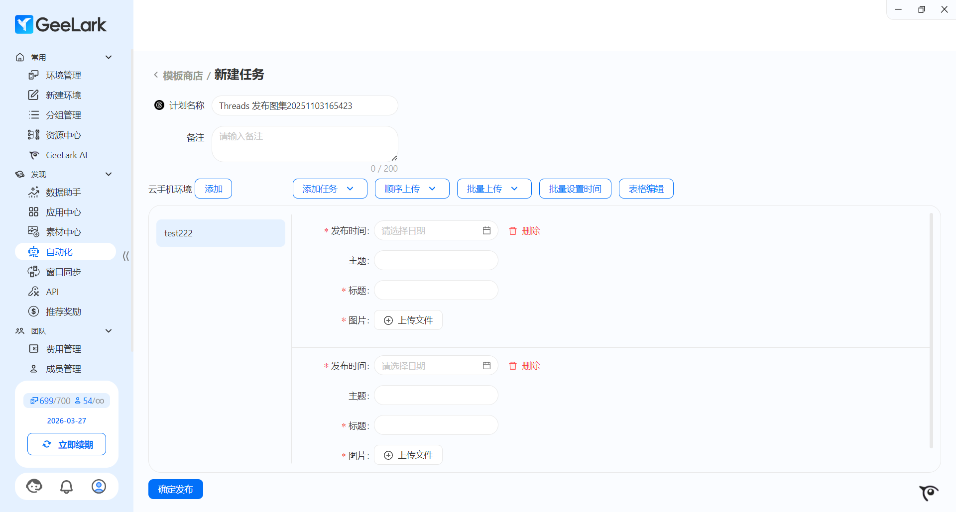 GeeLark 自动化发布 Threads 图集