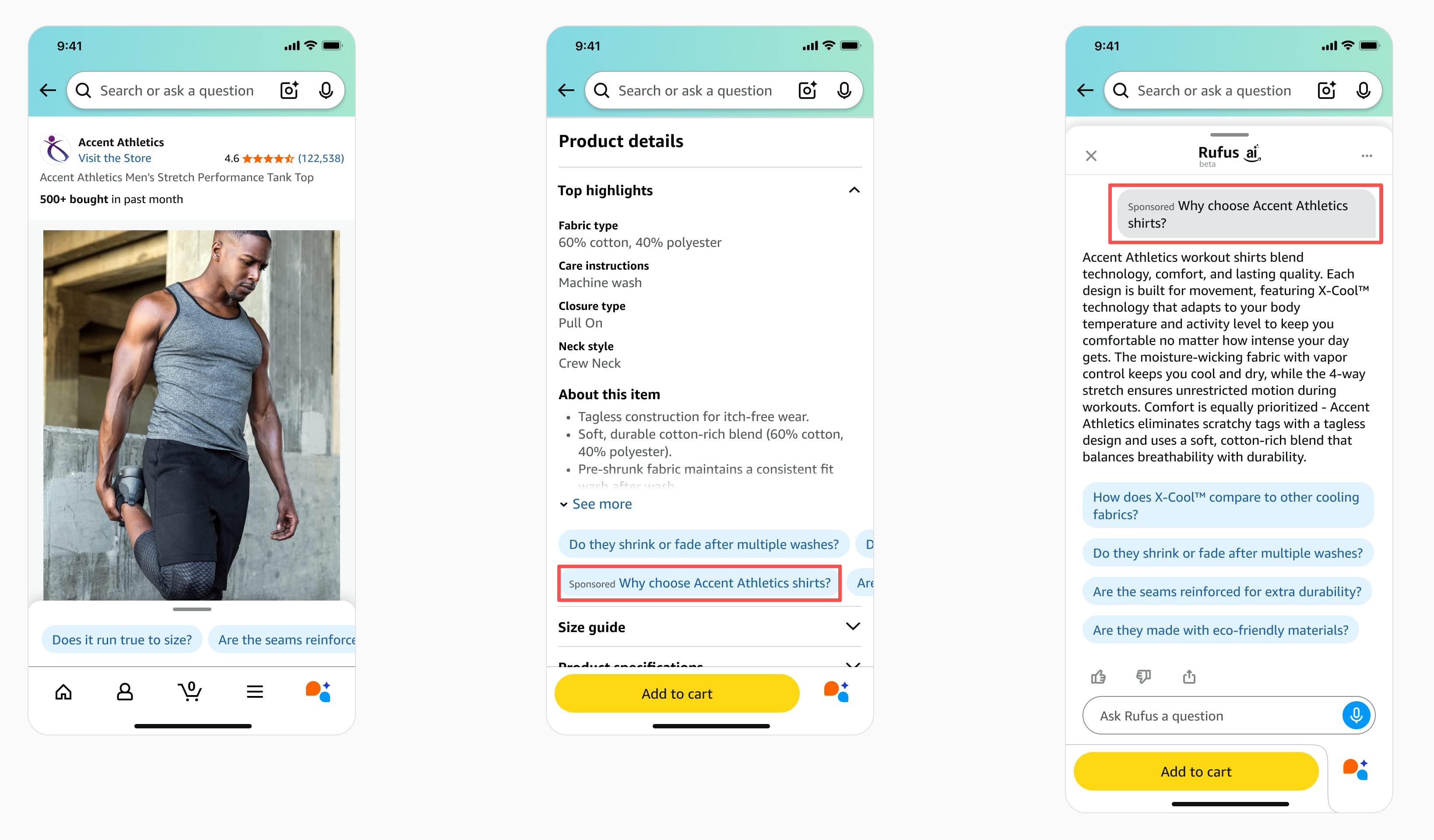 简单一点理解就是当买家不再搜索关键词,而是点击Rufus的提示问题时,你的产品出现在AI的对话回复中。