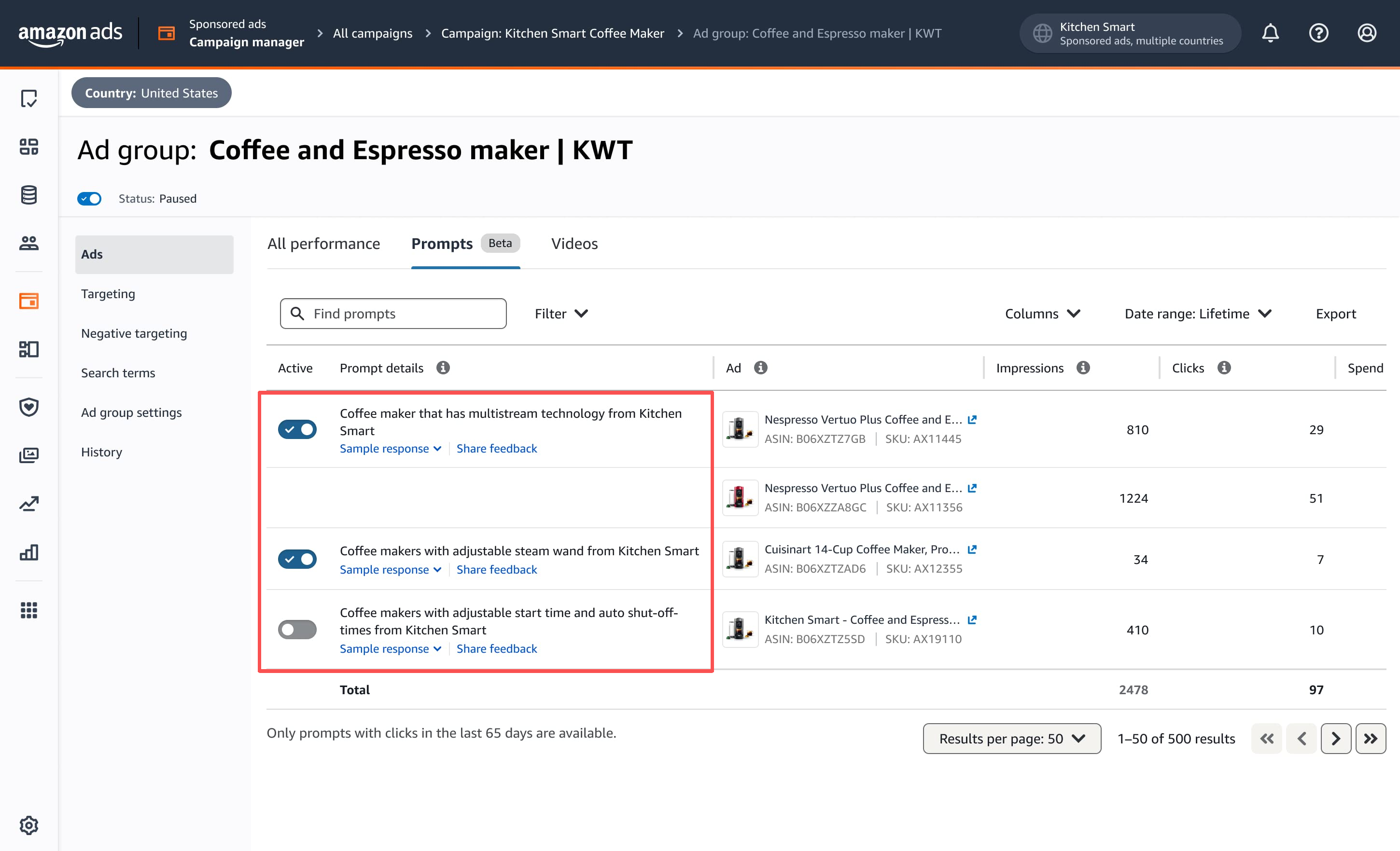 提示词不是卖家编辑的,而是由系统自动生成,基于亚马逊第一方洞察。