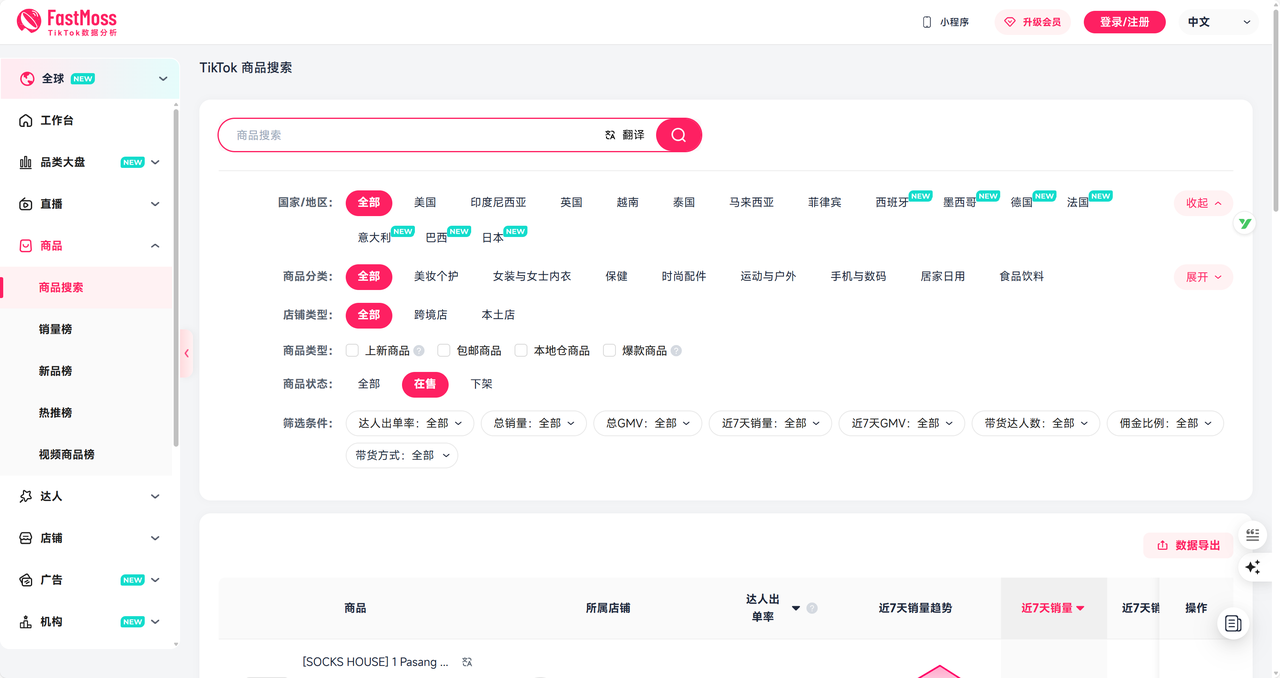 2.2 FastMoss:TikTok Shop垂直电商分析专家