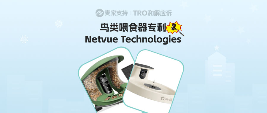 本案是Ni, Wang & Massand, PLLC代理中国跨境企业Netvue Technologies Co. Ltd.发起的专利维权案件,涉案专利为一款专利号为:RE50605的带摄像头鸟类喂食器设计专利。跨境侵权无小事,即使如此冷门小众的品类,也共有14个亚马逊店铺涉案,麦家支持建议跨境卖家在选品时务必做好知识产权排查工作,避免被TRO冻结袭击!另外需要本案名单的卖家可联系我们获取。