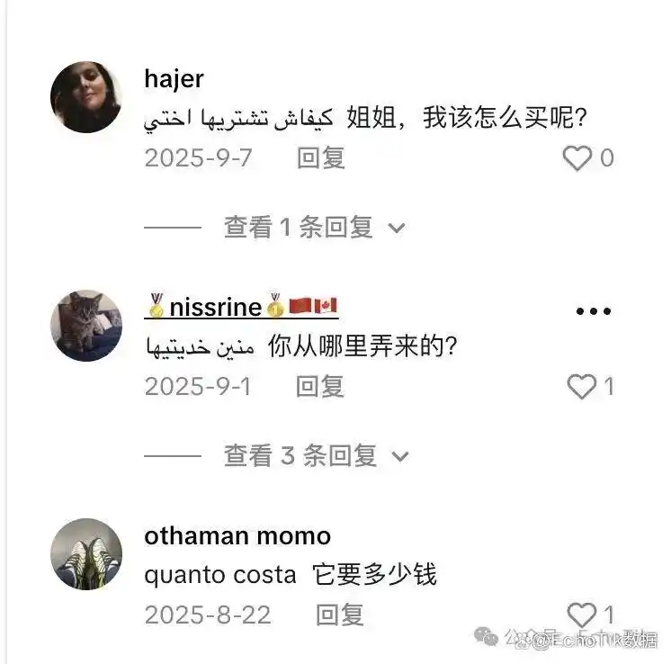 其中一个带货爆款视频出自法国达人douha(@dahou_houda) ,视频中展示了这款产品的多功能使用场景,视频下方很多人留言说这款产品很漂亮,并且询问怎么买、什么价格,有要给妹妹买的,也有要给孩子们买的。