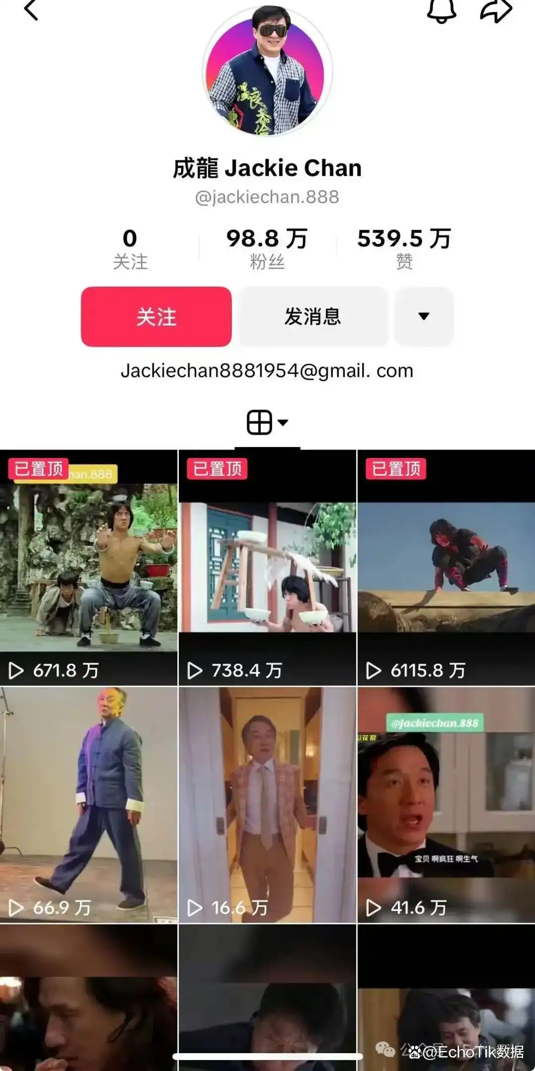 成龙在 TikTok 上也有账号,但更新频率相对较低,且内容多为大型活动、电影推广或慈善宣导、武术和日常生活 Vlog。
