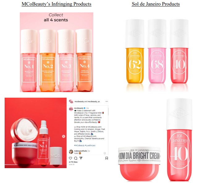 美妆品牌Sol de Janeiro 起诉MCoBeauty,诉讼理由不仅包含包装相似性争议,更关键的是其网红代言及宣传视频中“香氛气味完全一致”“留香全天”等表述虚假,并举证两款产品在成分、香氛配方和留香时长上存在实质差异,指控对方构成营销欺诈,而非单纯的设计模仿侵权。