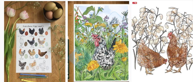 Rebekah Leigh Marshall是一名来自英国的宠物、马术和野生动物艺术家,其对艺术创作的热情源于对动物和自然的热爱。Rebekah Leigh Marshall除了专注于创作的以鸡为主题的作品外,也承接彩色铅笔和石墨宠物肖像画的创作。2011年,Rebekah Leigh Marshall在Etsy上开设了RebekahLeighArtist店铺,销售复古主题趣味插画,并逐渐将重心过渡到其热爱的动物主题插画上,其纺织作品均采用有机棉制成,并且完全在英国生产好之后销往全球。