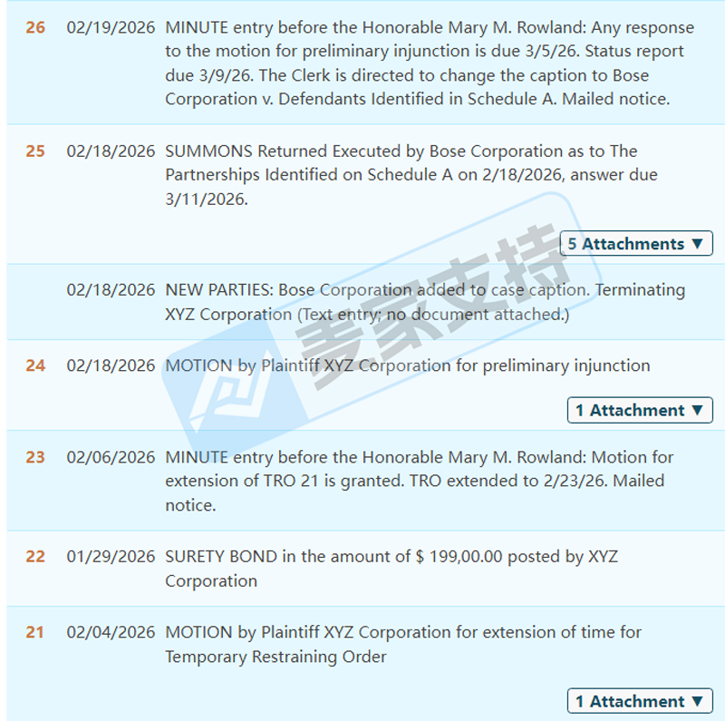 本案是Sullivan律所1月初代理的一起隐匿商标维权案件,案件于1月26日获批TRO临时限制令,涉案账户资金被冻结,但原告信息直至2月18日申请pi初步禁令时才得以披露,为全球音响品牌Bose发起的商标维权,共199店涉案,涵盖美国主流电商平台!目前该案件已进入和解谈判关键阶段,如果您也不幸收到了传票被列入其中,可联系我们获取解决方案!