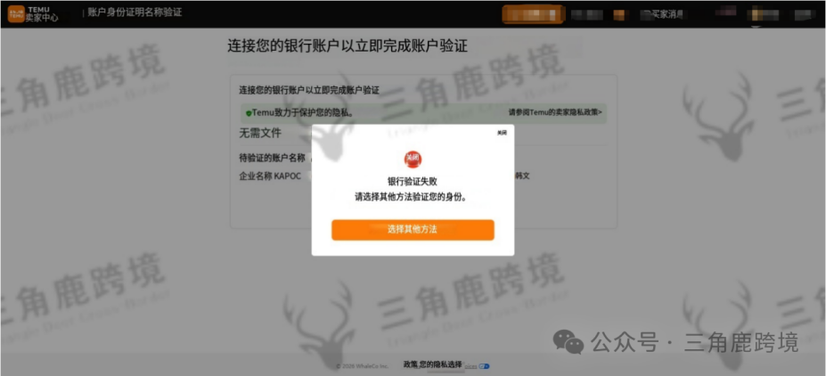 针对目前法国和英国已经大量出现的对公银行验证,三角鹿这边其实已经处理过不少成功案例。如果有卖家遇到对公验证不知道怎么处理,或者法人不方便配合操作的情况,都可以找我们沟通。同时三角鹿这边现在也有一些已经带对公银行的TEMU主体店铺可以提前预定,未来在注册新账号的时候,我们也会尽量直接申请带对公银行结构的主体,这样可以从源头上减少后续触发验证的概率,整体运营也会更加稳定。