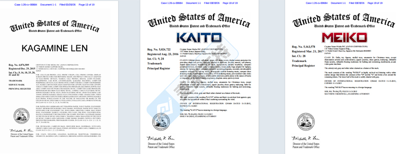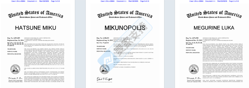 | 26-cv-00684 | 03/20/2026 | AGDG | Hatsune Miku 初音未来 |