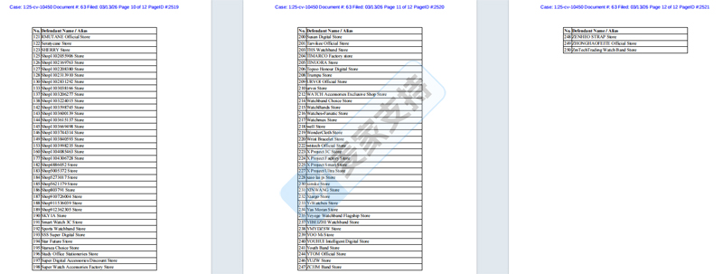 | 案件号 | 起诉时间 | 原告律所 | 侵权品牌 |